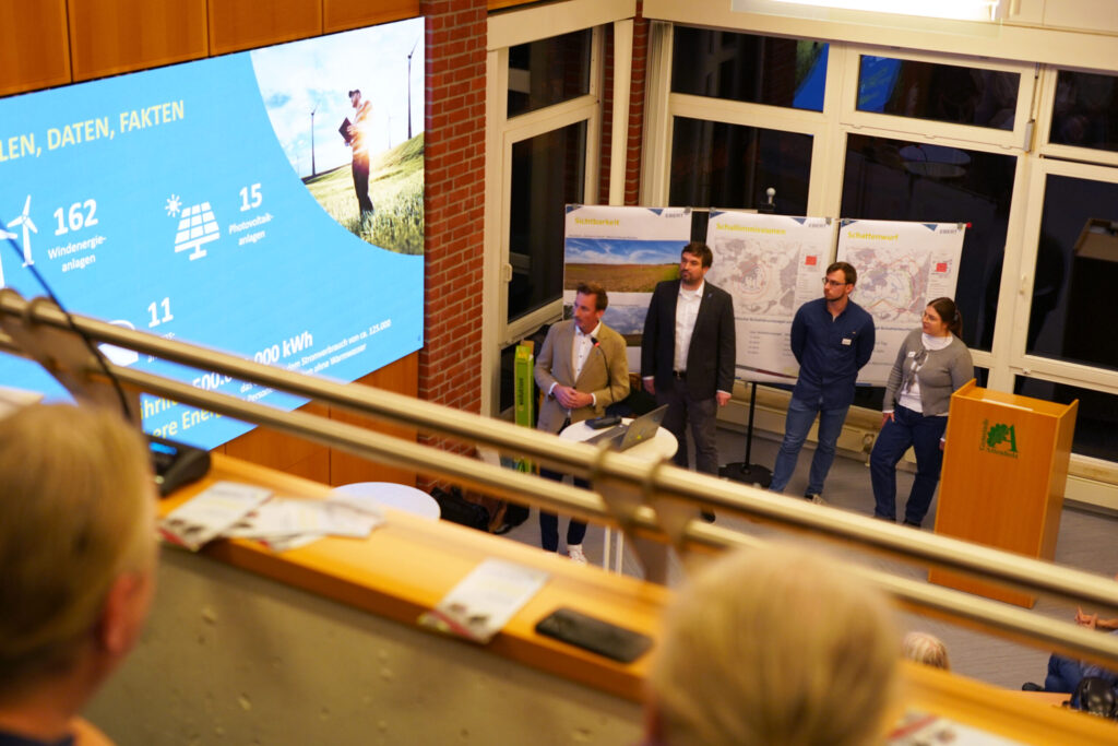 Altenholz, 11.12.2025 – Bei der gestrigen Einwohnerversammlung im Ratssaal Altenholz hat EBERT Erneuerbare Energien den aktuellen Stand des geplanten Windenergie-Projekts vorgestellt und Fragen aus der Bevölkerung aufgenommen. Das Interesse war groß: Es kamen mehr Besucherinnen und Besucher, als Sitzplätze zur Verfügung standen; selbst die zusätzlich geöffnete Empore war bis auf den letzten Platz gefüllt. Im Mittelpunkt der Gespräche standen insbesondere Themen wie Beteiligungsmöglichkeiten für Gemeinde und Anwohnende sowie konkrete Fragen zur Sichtbarkeit der geplanten Anlagen oder zur Bau- und Rückbauphase.